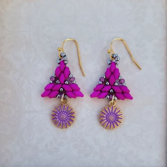 Iris SuperDuo beads with peacock seed beads on silver earwires.
