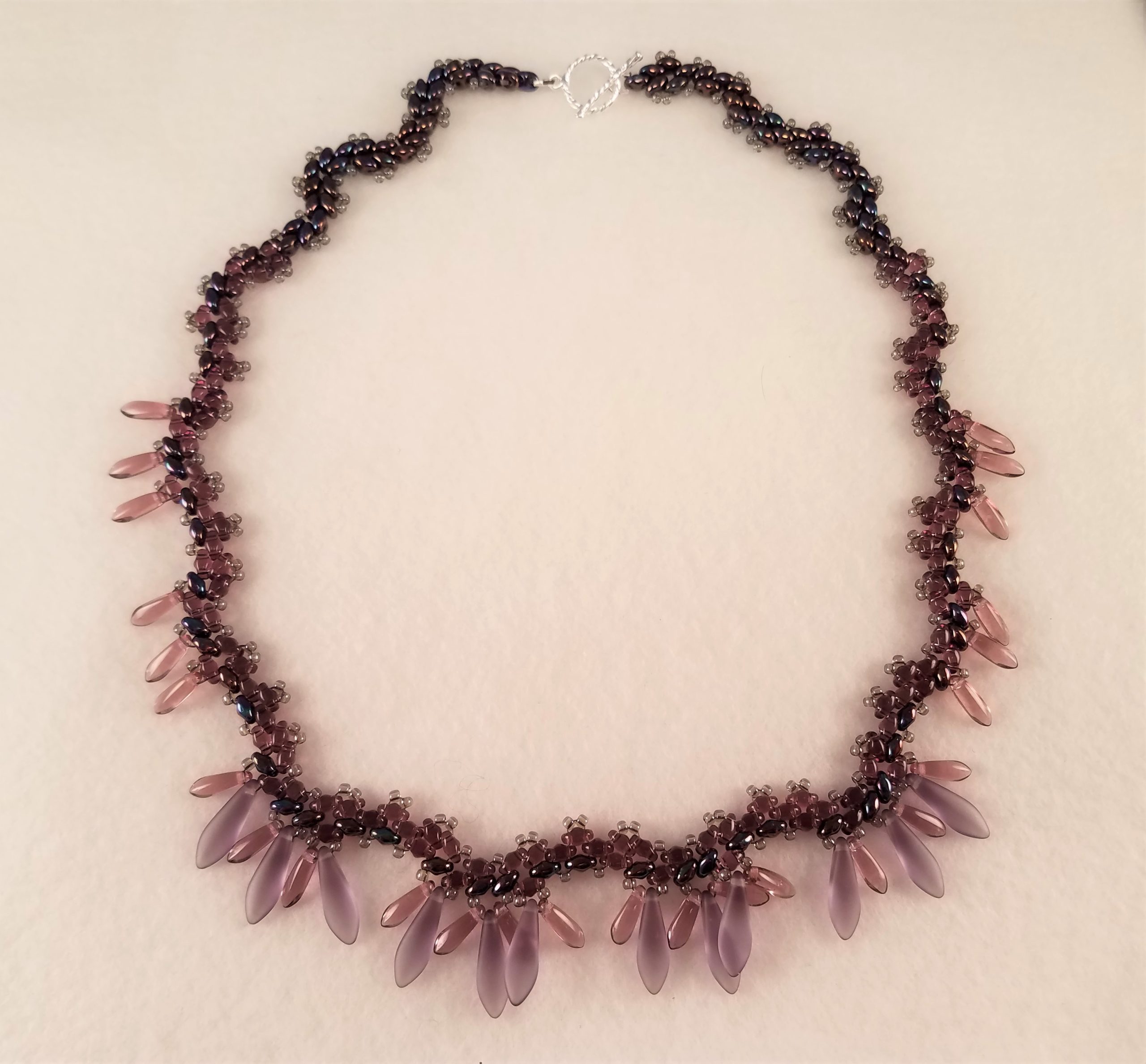 Rambling vine of deep purple super duos adorned with fun purple dagger shapes.