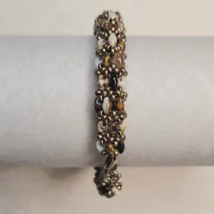 Matte gold and sand czech glass beads, gold magnetic clasp.