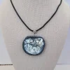Necklaces1 and 5/8 inches x 1 and 3/8 inches on an 18 inch leather cord.
