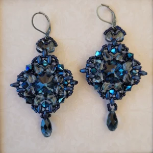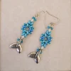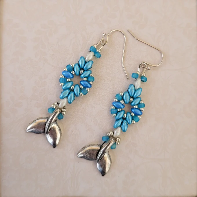 Playful fishtails complete these earrings of Carolina blue, pearl, and silver beads. Silver earwires.