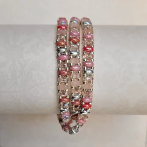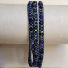 Made with a larger wrist in mind, this wrap bracelet is made of a spectrum of dark blue SuperDuos with hematite seed beads. Stirling silver magnetic clasp.